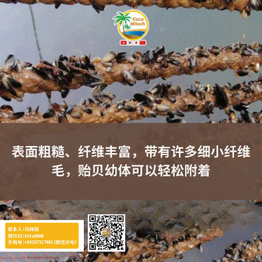 – 适合贻贝附着生长: 椰纤维绳表面具有天然粗糙的纤维结构,为贻贝幼苗提供了理想的攀附平面,使其更容易固定和生长,从而提高养殖效率。