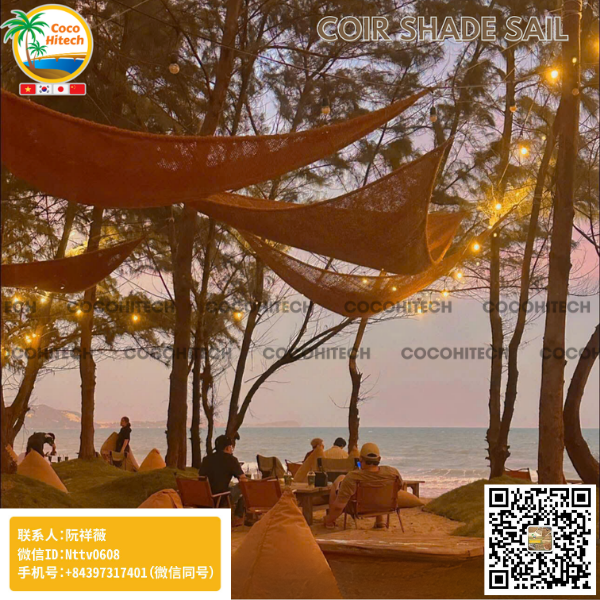 越南是世界上椰子资源丰富的国家之一,尤其是在槟椥省,这里被称为越南的“椰子之都”。凭借充足的原材料供应链,越南发展了完善的椰纤维产业,其中椰纤维遮阳帆正逐渐成为户外景观和度假空间中流行的天然遮阳解决方案。