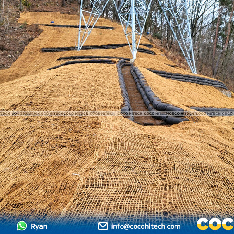 Coir net is used for soil erosion for farm, slope erosion control in road, covering barren hills, natural art decord…